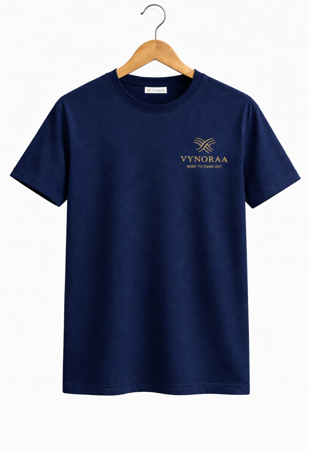 Upgrade your everyday style with this premium navy blue Vynoraa t-shirt. Crafted from soft, breathable cotton, it offers all-day comfort with a modern fit and a minimal logo design—perfect for casual wear.